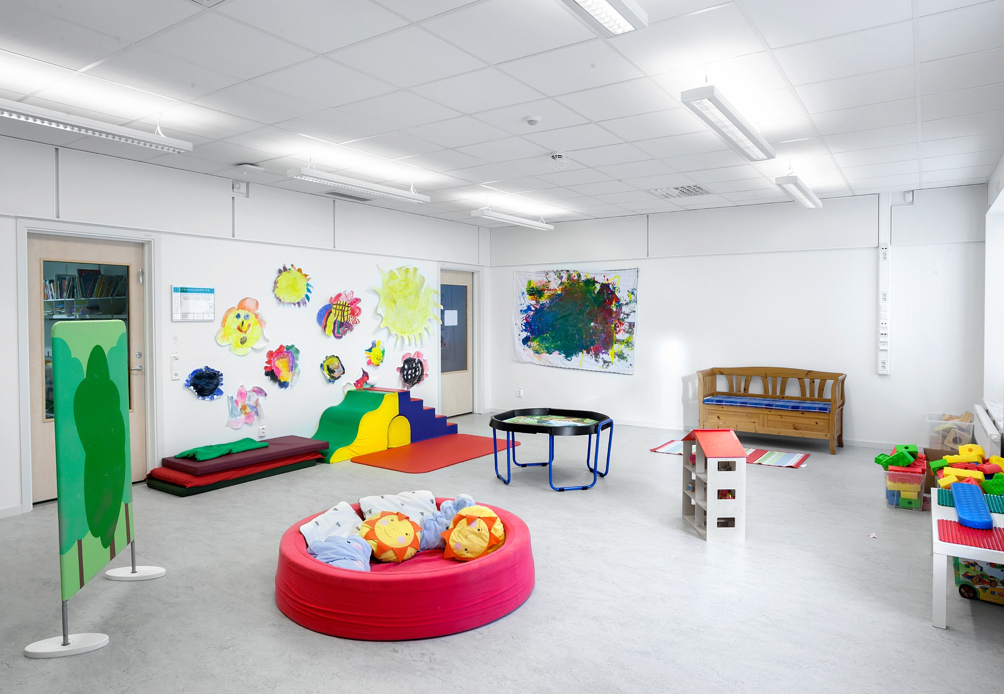 Rivning av Fräntorpsskolan och uppbyggnad av ny skola, med fokus på utemiljö för barnen. Prefabricerat trähus, uppbyggt med platta på mark och övre fläktrum med HDF Bjälklag. Skolan omfattas av 8 avdelningar och har ett eget storkök för mattillverkning. Uppbyggd med höga krav på lufttäthet, värmeisolering, fukt, ljud- och brandavskiljning. Gediget placerad förskola i lugn och betryggande omgivning vid villaområde och skog, samt vid nära anslutning till Östra Sjukhuset.