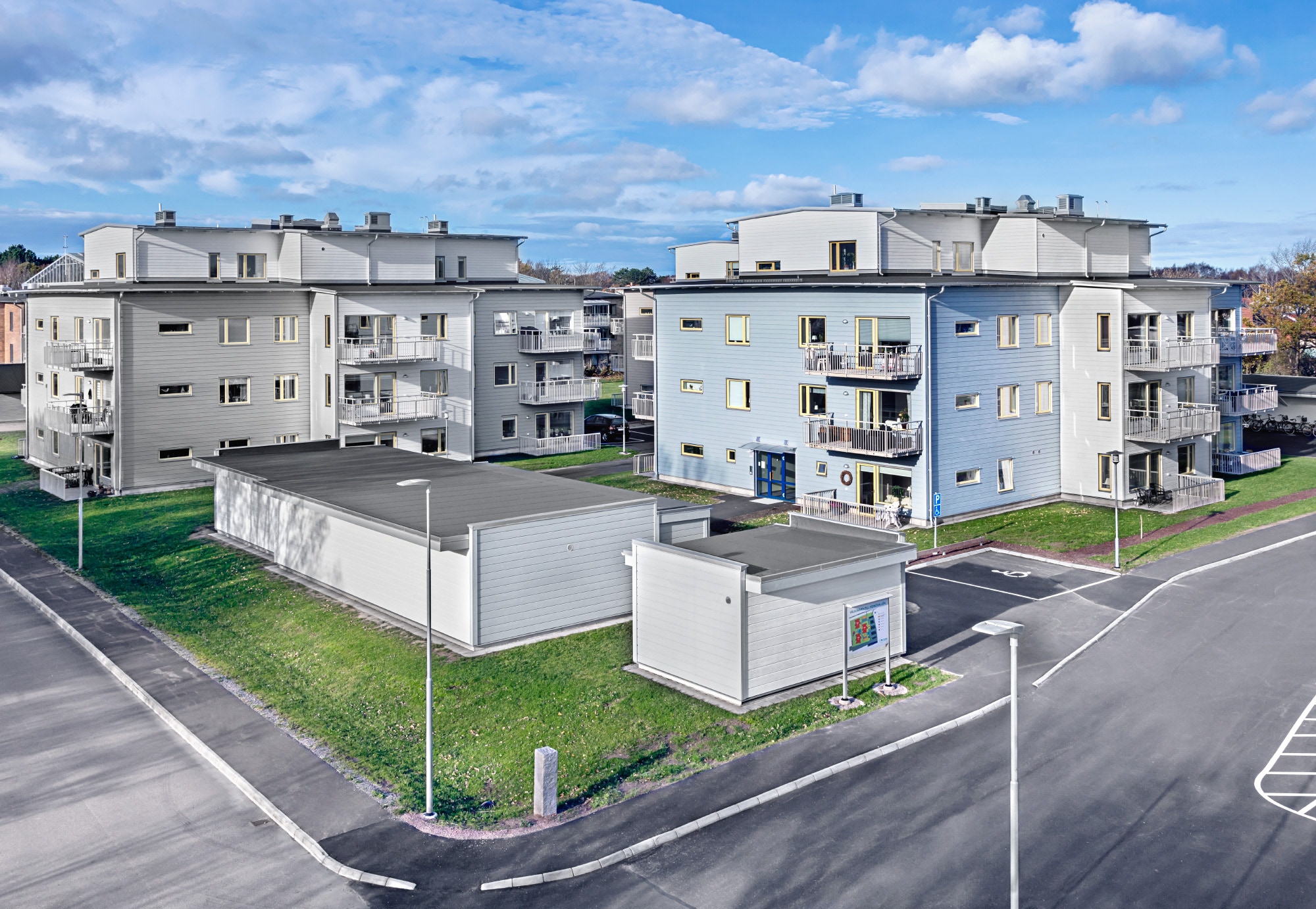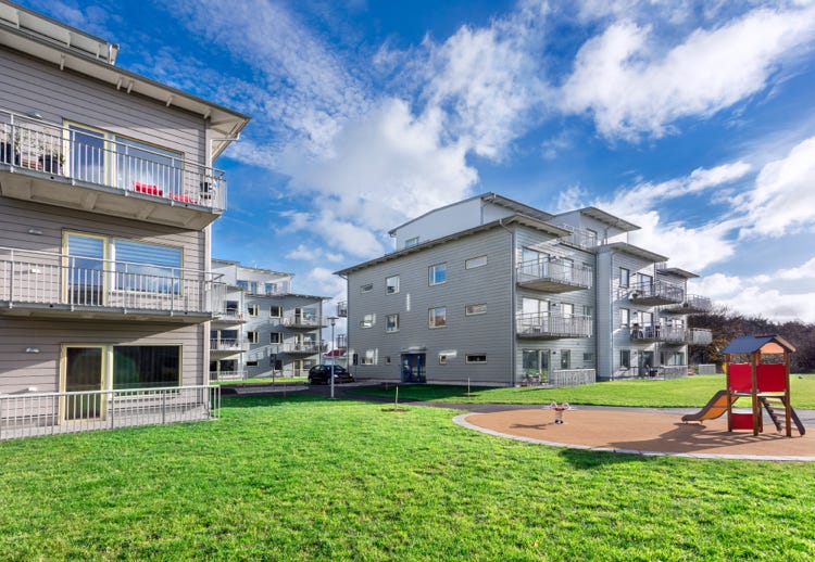 RA Bygg lägenhetshus som var antagna med en ny detaljplan för höjden. Med sina fyra våningar har man en fantastisk utsikt mot havet och Vinga fyr utanför Klåvas välkomnande hamn.