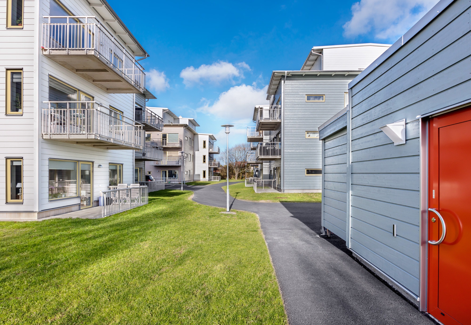 60 moderna lägenheter med balkong eller uteplats finns med varierande storlekar för alla åldrar med fokus på bekvämlighet. Projektet genomfördes från 2015 till 2017.
