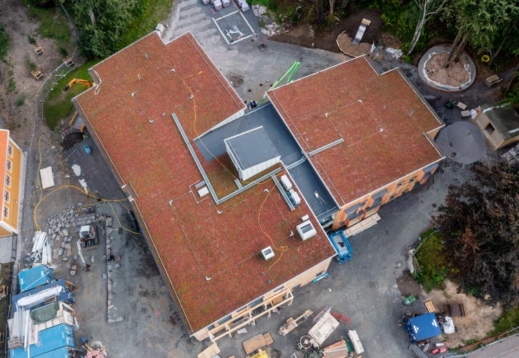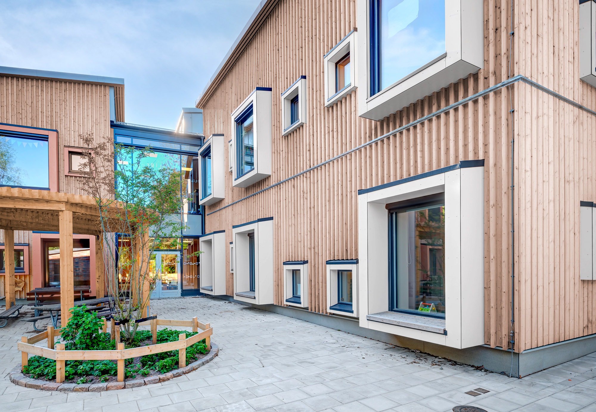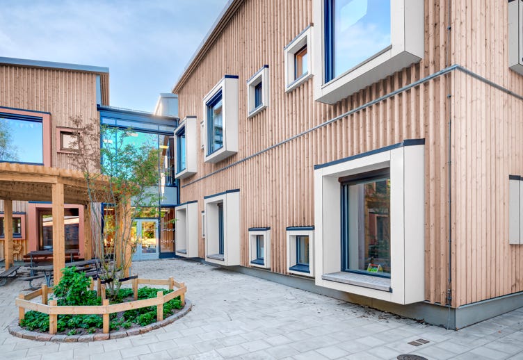 Man byggde en förskola där allt i byggprocessen var så fossilfritt som möjligt. Detta innefattade allt från vilka material som nyttjades till vilka metoder som användes. Alla led i byggarbetet skulle undersökas och fås att bli fossilfria och därmed påverka klimatet minimalt