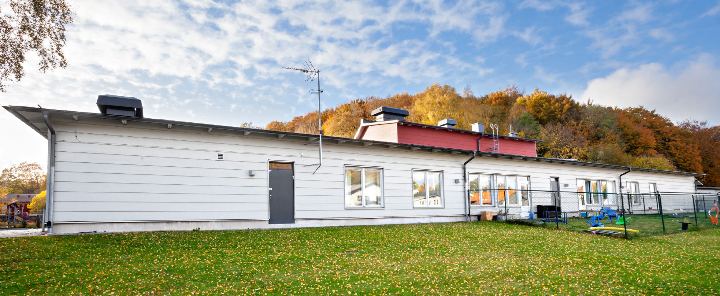 Rivning av Fräntorpsskolan och uppbyggnad av ny skola, med fokus på utemiljö för barnen. Prefabricerat trähus, uppbyggt med platta på mark och övre fläktrum med HDF Bjälklag. Skolan omfattas av 8 avdelningar och har ett eget storkök för mattillverkning. Uppbyggd med höga krav på lufttäthet, värmeisolering, fukt, ljud- och brandavskiljning. Gediget placerad förskola i lugn och betryggande omgivning vid villaområde och skog, samt vid nära anslutning till Östra Sjukhuset.