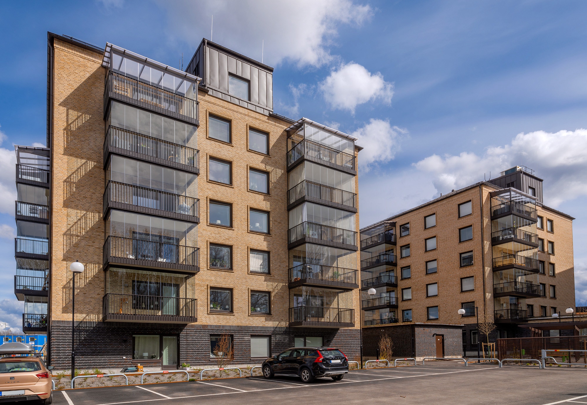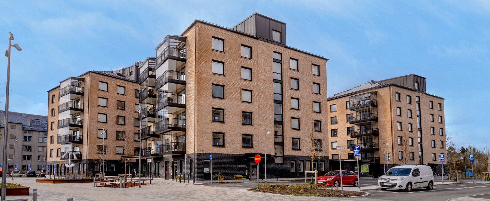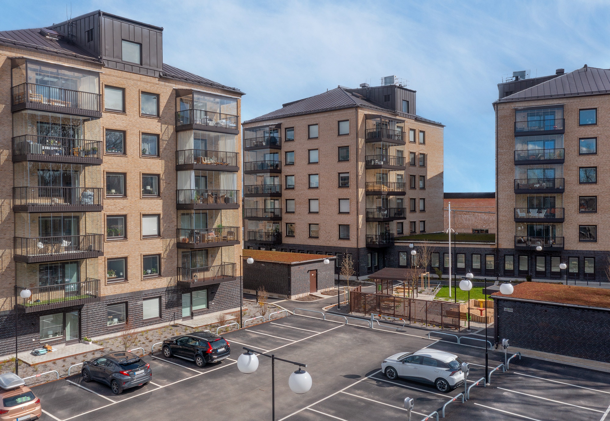 Projektet omfattar 63 lägenheter samt en vårdcentral i tre hus och utfördes för Partillebo med inflyttning 2023.