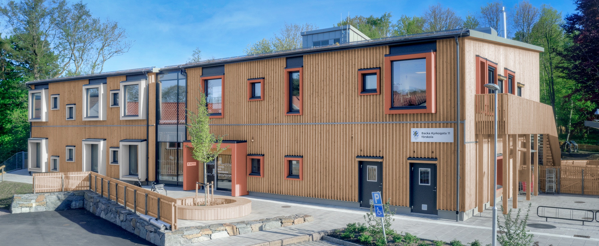 Man byggde en förskola där allt i byggprocessen var så fossilfritt som möjligt. Detta innefattade allt från vilka material som nyttjades till vilka metoder som användes. Alla led i byggarbetet skulle undersökas och fås att bli fossilfria och därmed påverka klimatet minimalt