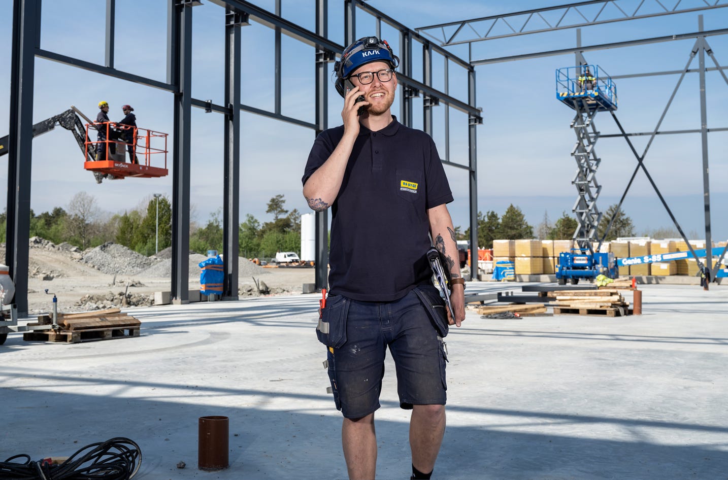 Dagen börjar med ett uppstartsmöte där vi snabbt går igenom viktiga händelser under dagen samt stämmer av läget på plats. Efter det brukar jag gå en runda på bygget och prata med kollegorna. Mycket av tiden går åt att planera inköp, kommande arbeten och arbetsmiljön.