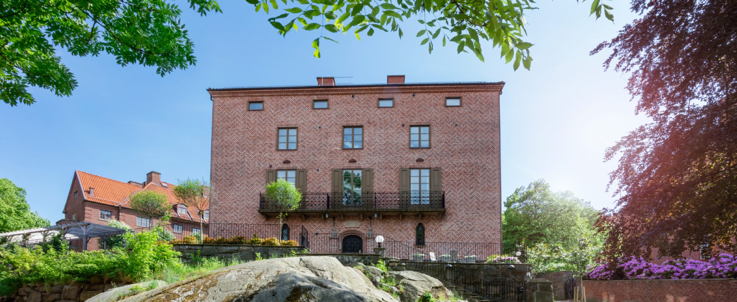 En klassisk byggnad vid Näckrosdammen i Göteborg.